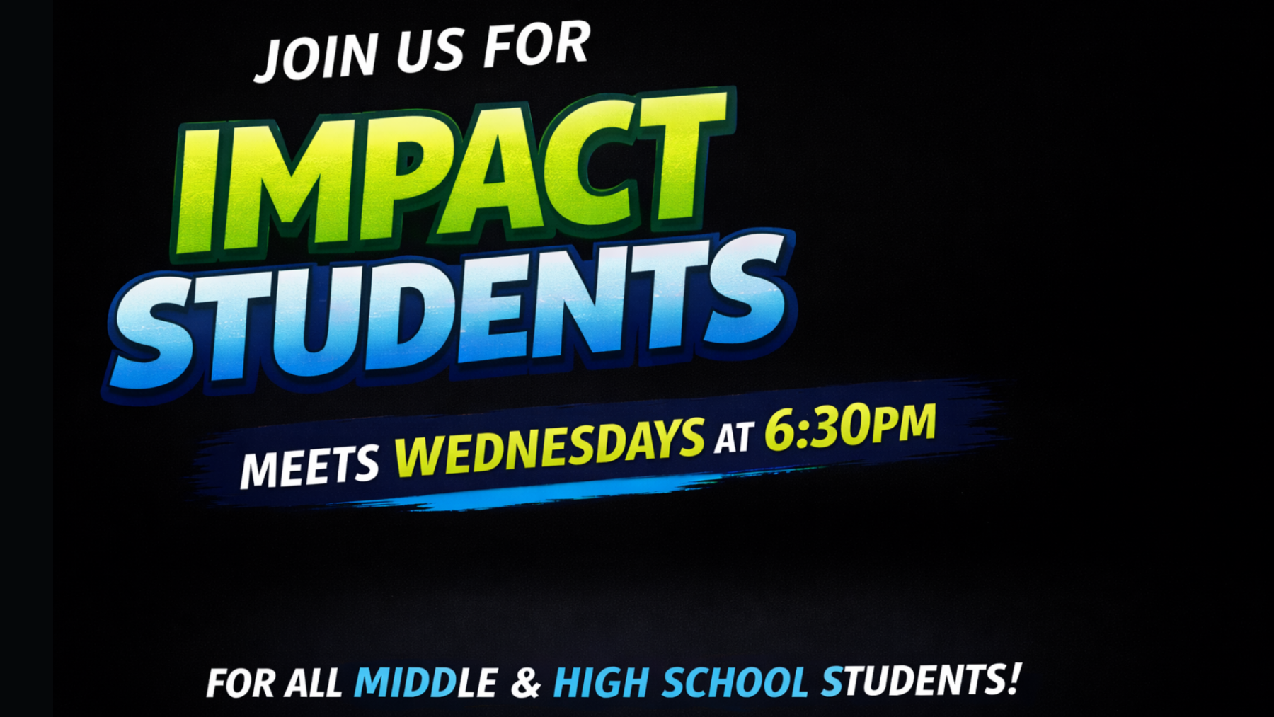 Impact Students offers you an opportunity to join other students through a journey of life, be an encouragement to each other, and learn to be unashamed of discovering who God has called you to be in this world! If you are in 6th through 12th grade this a great place for you to be!