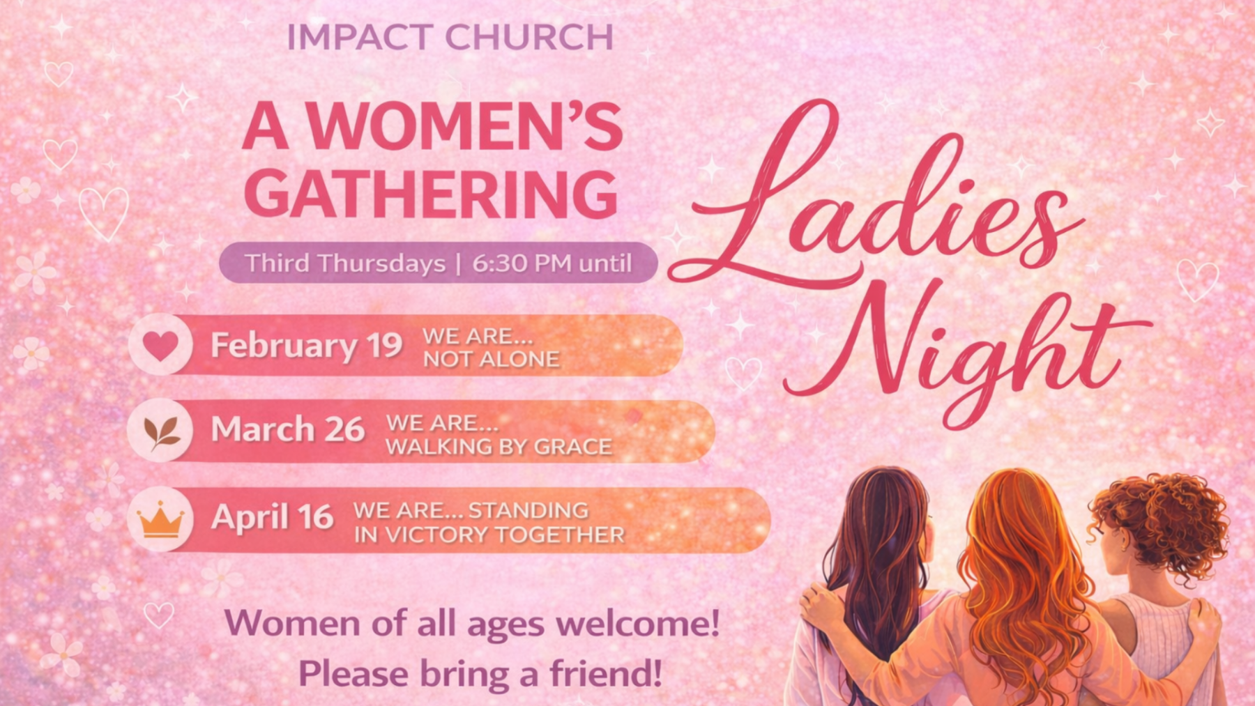 I am so excited to see where God is taking this ministry! This ministry is not just for women of Impact Church but also other women in the community. All women are invited to all events, gatherings, conferences, and anything else where our women are involved. Feel free to contact me here at any time!